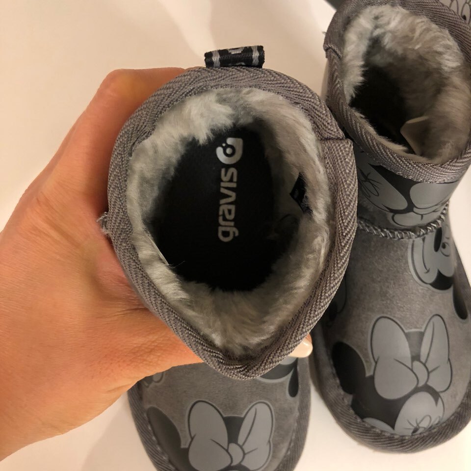 미키미니의 귀여운 패턴이 들어가있는, 그라비스 키즈용 부츠 입니다