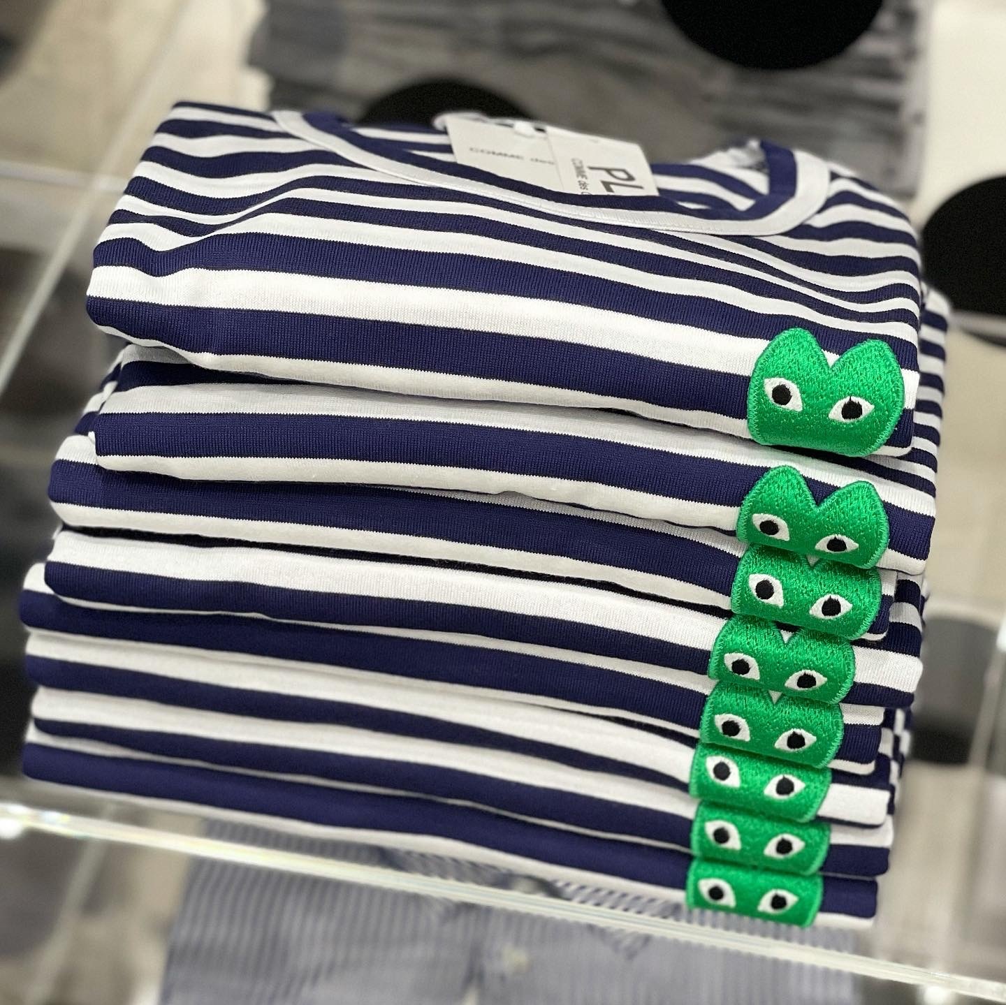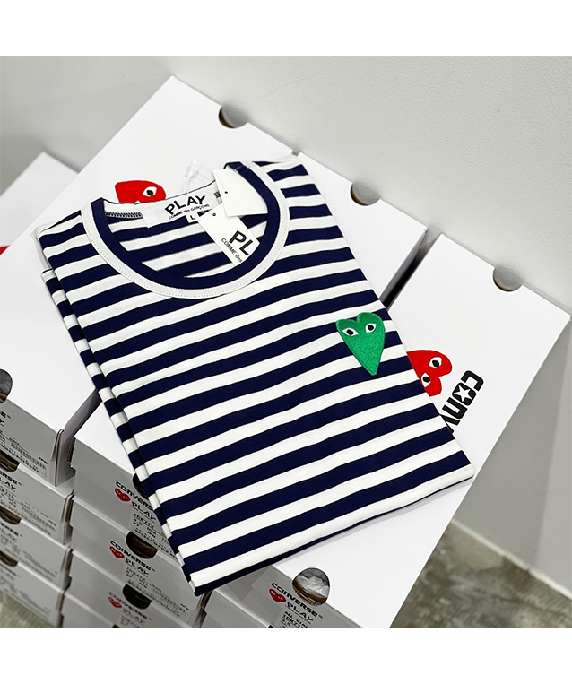 (men) PLAY COMME des GARÇONS Striped T-Shirt (Navy/White)Green Heart