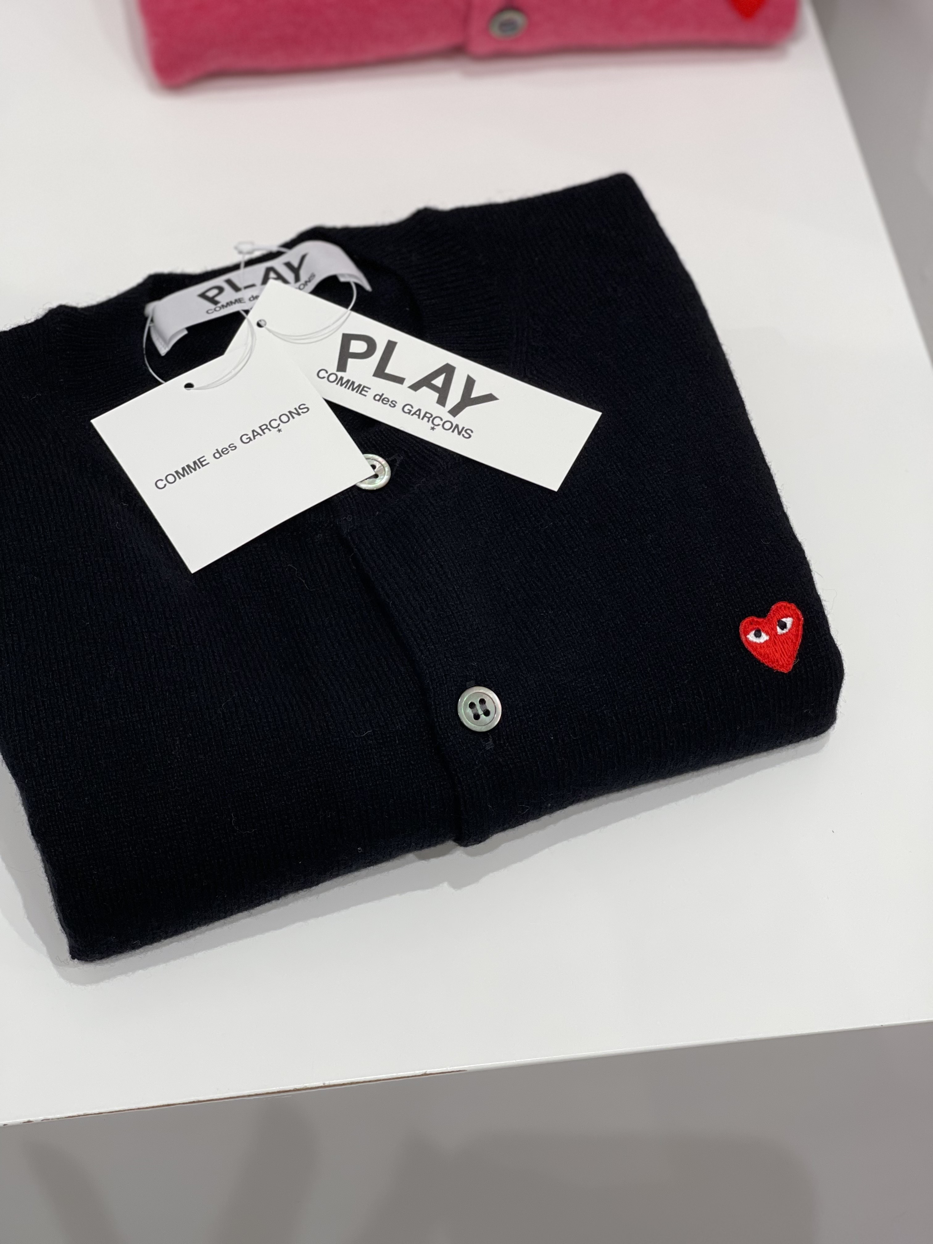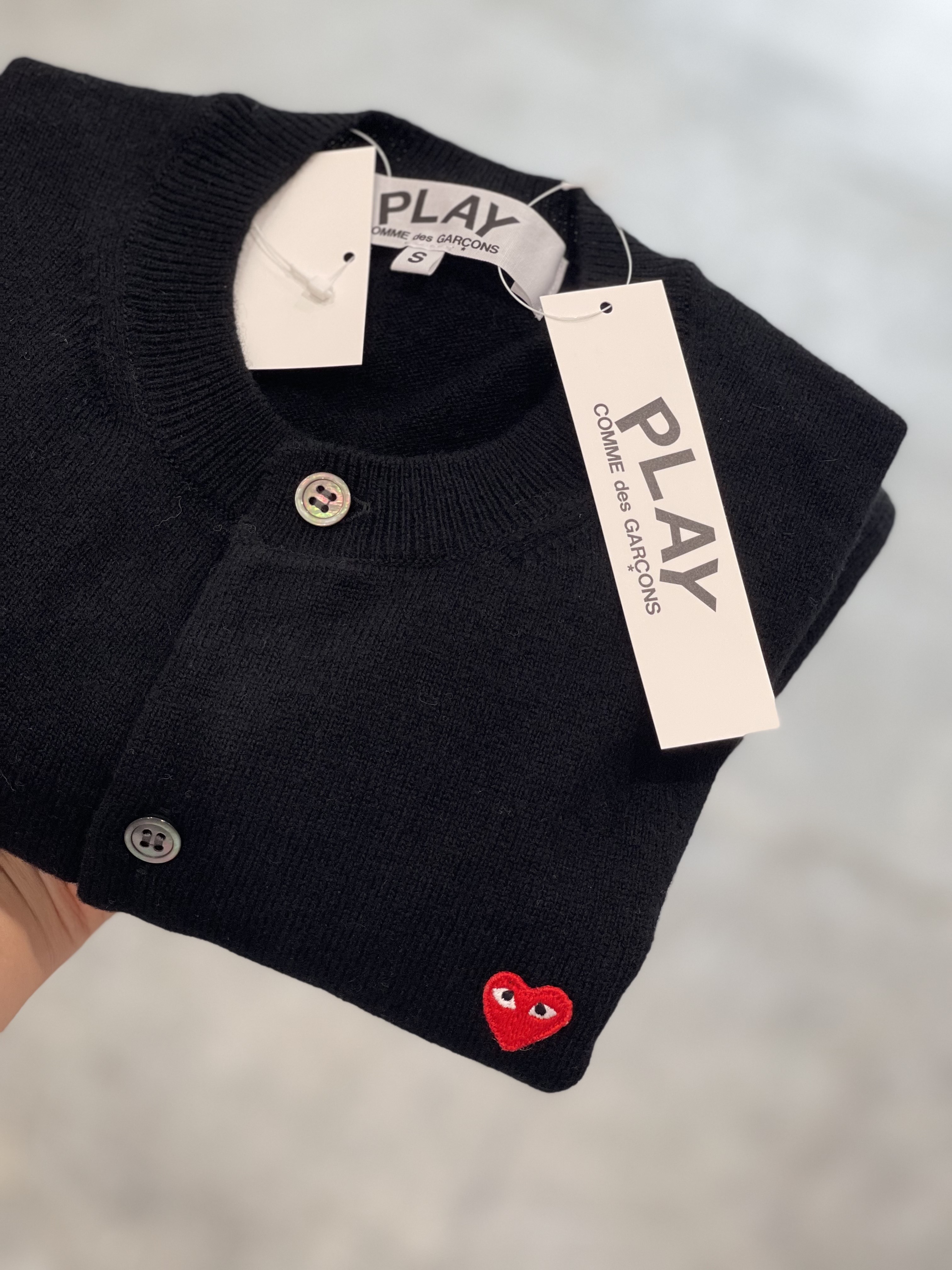 (women) PLAY COMME des GARÇONS Red Mini Heart Ladies’ Cardigan (Black)